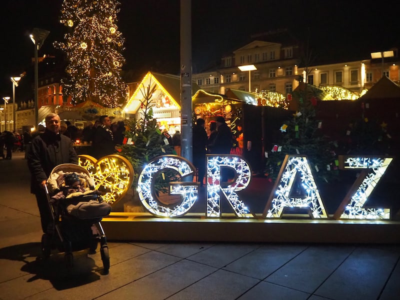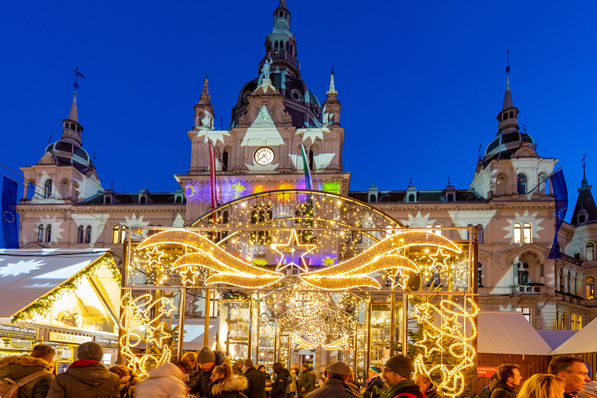 Utazás rövid pihenőkkel Grazig. Stájerország fővárosában először felmegyünk a város fölé 473 m-re emelkedő „Schlossberg”-re, azaz Kastélyhegyre, a 2004-ben újjávarázsolt, de 1894 óta működő drótkötél-vontatta kisvasúttal. Itt található a város egyik jelképe, a híres óratorony. A környék gyönyörű panorámájának megcsodálása mellé adventkor jár egy kis szabadidő, mely alatt vagy felfedezzük a vár rejtett zugait, vagy egy pohár forraltborral a kezünkben elmerülünk a város csodálatos látványában.